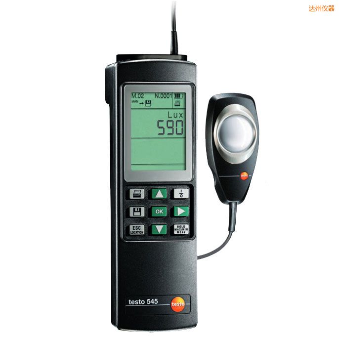 testo 545照度儀, 包括探頭,照度計使用,電池和標定證書;PC 分析/打印/記錄功能/平均值/最大值/最小值