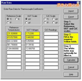 您了解了 MET/TEMP II 軟件的優(yōu)勢,,但未訂購具有 RS-232 端口的福祿克公司計量校準部的儀器,,或者可能已錯誤地購買了能力欠佳的同類產(chǎn)品。 您不必沮喪,,因為我們已經(jīng)為您提供了補救方法!我們的 TableWare 軟件包除了無法與 MET/TEMP II 數(shù)據(jù)庫連接,,可以完成 MET/TEMP II 中 Coefficients 和 Tables 實用程序能完成的一切操作。TableWare 是計算和生成數(shù)據(jù)的軟件包,,且使用手動輸入的數(shù)據(jù)。該軟件包更會節(jié)省您在計算上花費的時間和金錢,,因此是個絕好的選擇。 TableWare 可計算 RTD、熱敏電阻和熱電偶的系數(shù)。它使用 ITS-90、IPTS-68、Callendar-Van Dusen 和多項式方程。TableWare 還可生成溫度對電阻、溫度比較率或溫度對熱電勢的對比表。 可輸入或?qū)胄实碾娮杌螂妷涸紨?shù)據(jù)。TableWare 會生成系數(shù)、計算余值,,并生成有用的表格。 表格和系數(shù)可導(dǎo)出為文本文件,,以便在其他軟件包內(nèi)進行分析。 TableWare 還可以使用能夠手動輸入的系數(shù)生成表格。不需要原始數(shù)據(jù)!