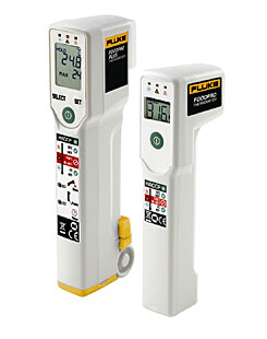 Fluke 將其測試和測量設(shè)備專業(yè)技術(shù)應(yīng)用到食品行業(yè),開發(fā)出接觸式與非接觸式溫度測量解決方案。 新型 Fluke FoodPro測溫儀系列為食品專家提供了一整套溫度測量和監(jiān)控解決方案。 這套解決方案包括兩個功能強大的溫度檢測工具,可幫助食品專家快速、準(zhǔn)確地測量食品溫度,手持式紅外測溫儀,并有助于檢測出潛在的食品安全問題。 Fluke FoodPro 非接觸式測溫儀是防御不適當(dāng)接收、存放溫度的前線設(shè)備。 該款高精度 FoodPro 測溫儀采用紅外線測量技術(shù),便攜式焦?fàn)t紅外測溫儀,能夠迅速讀取表面溫度,使工作人員能夠快速、頻繁地測量溫度 – 其測量速度要快于接觸式設(shè)備,并且無需擔(dān)心交叉污染。 易于觀察的照明燈可向您指示測量區(qū)域。 Fluke FoodPro Plus 兼有相同的紅外線表面溫度掃描器以及一個探針測溫儀,它還集成了倒計時器,用于全面檢驗食品溫度和監(jiān)控烹制與冷卻時間間隔。 FoodPro 系列測溫儀可手洗并具有獨特的 HACCP 檢測光,它能夠即刻以綠燈或紅燈的形式指示安全或可能不安全的存放溫度。 實際應(yīng)用
